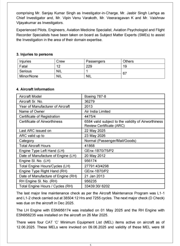 रिपोर्ट से पता चलता है कि बोइंग विमान उड़ा रहे सह-पायलट क्लाइव कुंदर ने कैप्टन सुमित भलरवाल से पूछा, ‘आपने ईंधन स्विच को ‘कटऑफ’ स्थिति में क्यों रखा?’ हालाँकि, यह सवाल पूछे जाने पर कैप्टन सुमित बेहद शांत दिखे। इस रिपोर्ट पर भारतीय एजेंसियों की ओर से कोई प्रतिक्रिया नहीं दी गई है। हालाँकि, नागरिक उड्डयन विशेषज्ञ संजय लाज़र ने जाँच रिपोर्ट के लीक होने पर गहरी चिंता व्यक्त की है। उन्होंने कहा, यह आश्चर्यजनक है कि अमेरिकी मीडिया के पास भारतीय संसद और नागरिक उड्डयन मंत्रालय से ज़्यादा जानकारी है। प्रधानमंत्री को इस मामले की जाँच किसी उच्च न्यायालय के न्यायाधीश से करवानी चाहिए।